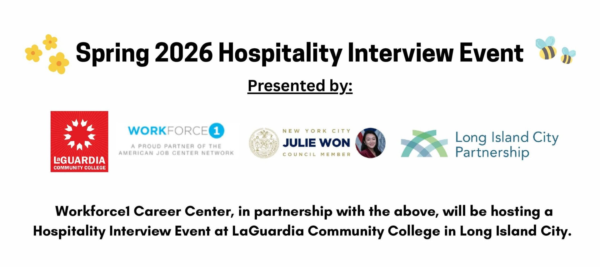 Workforce1 Career Center, in partnership with the above, will be hosting a Hospitality Interview Event at LaGuardia Community College in Long Island City. Our goal is to give Long Island City employers the chance to interview qualified candidates for the busy season!